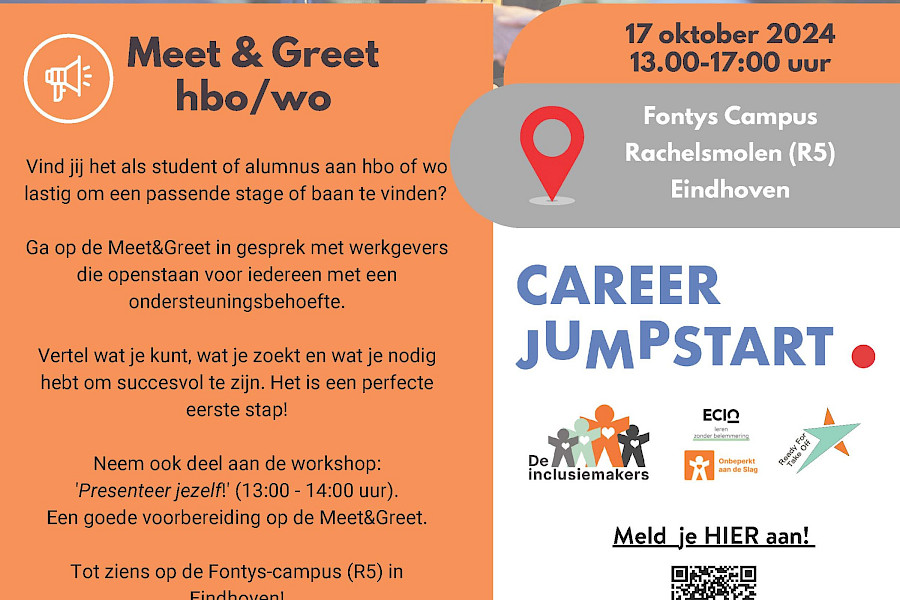 Meet employers who are open to anyone with a support question during the Meet & Greet. A Meet&Greet is a place where you can meet employers and talk to them about a possible job or internship. You can tell them what you can do, what you would like and what you need to be successful in your job.